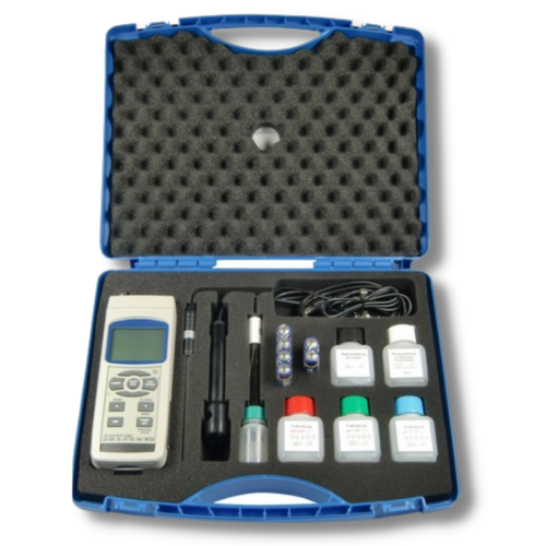 Uređaj za mjerenje pH, slanosti, vodljivosti i kisika. Set uključuje uređaj WAM 235, sondu za pH i temperaturu, sondu za vodljivost i kalibracijske tekućine. Sve skupa u robusnom transportnom kućištu. Sonda za kisik se po potrebi naručuje zasebno.