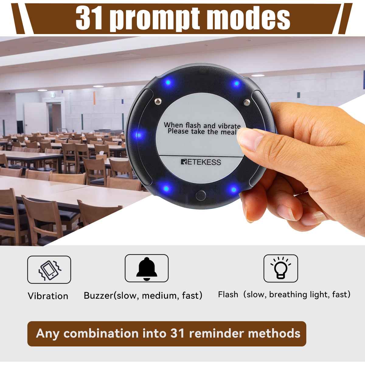 Retekess TD163 bežični sustav za pozivanje gostiju, 20 tankih pagera sa zujalicom za restorane brze hrane