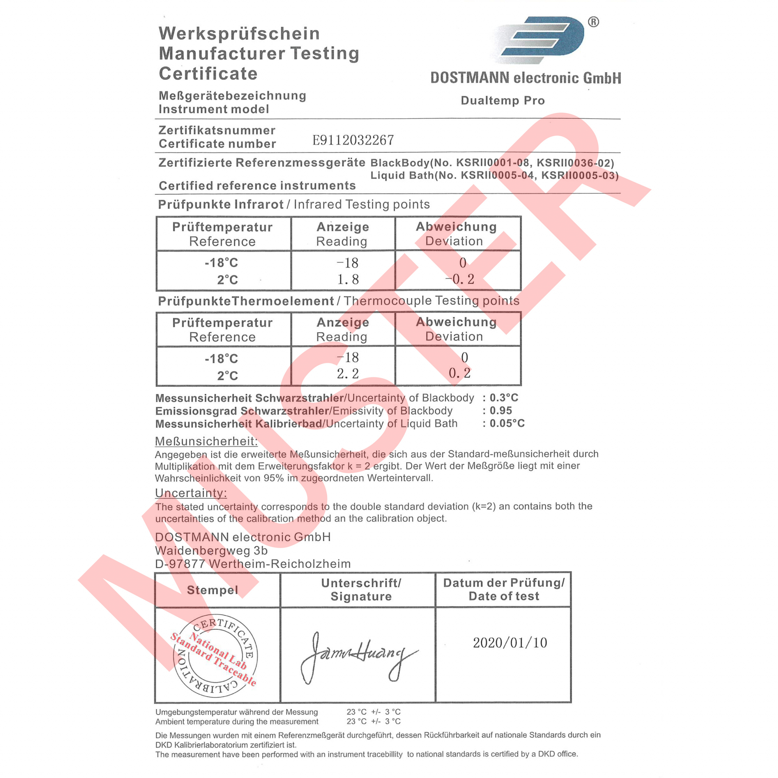 1 x Termometar Dualtemp Pro, 1 x baterija, 1 x torbica za nošenje i uputstvo