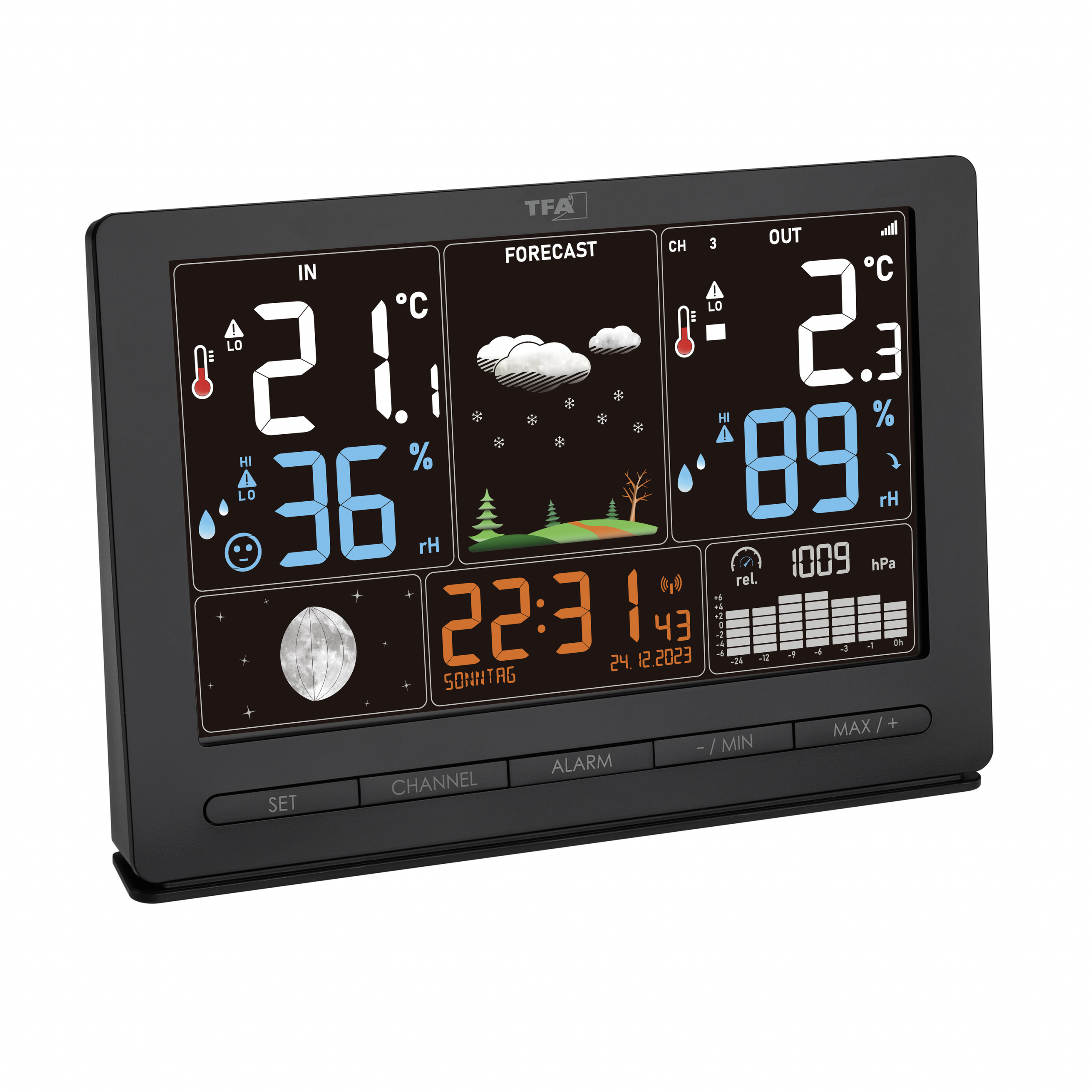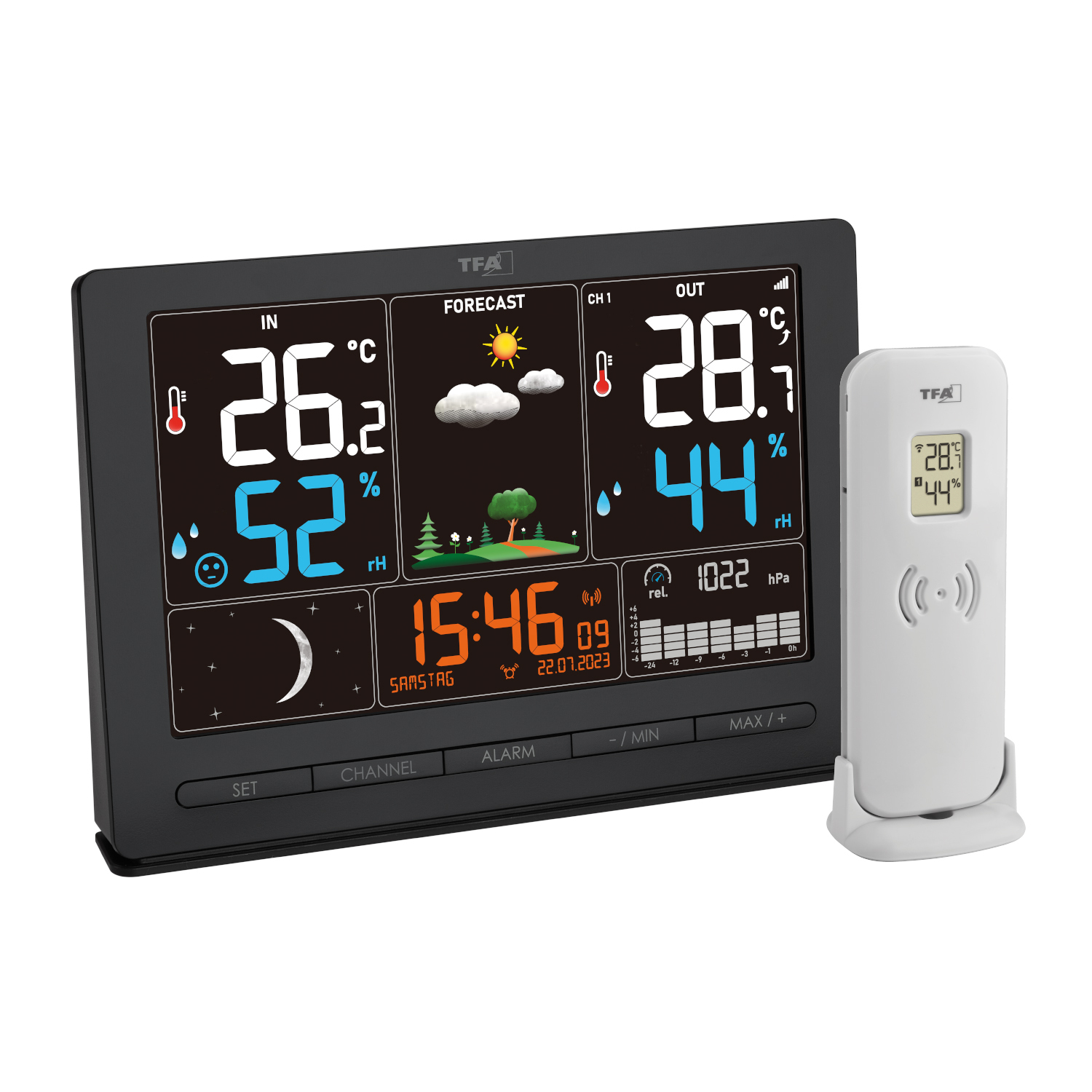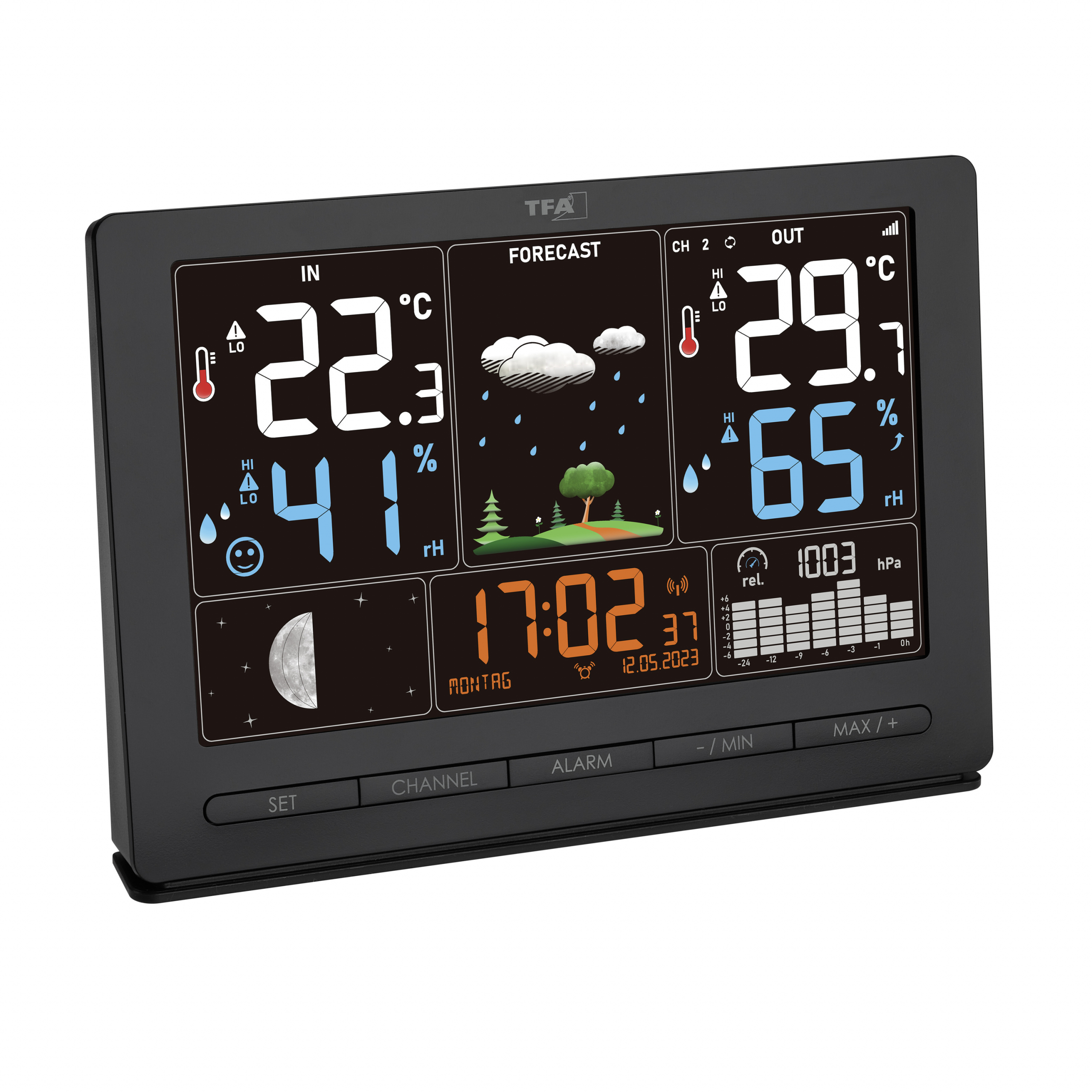 S elegantnim dizajnom u zaštićenom TFA stilu, bežična meteorološka stanica savršeno se uklapa među fotografije u dnevnoj sobi ili na noćni ormarić u spavaćoj sobi. Tamo njegov budilnik s funkcijom odgode alarma zaista blista, osiguravajući da započnete dan s pravom vremenskom prognozom. Sunčane naočale ili kišobran? Dovoljan je pogled na vašu meteorološku stanicu da biste znali.
