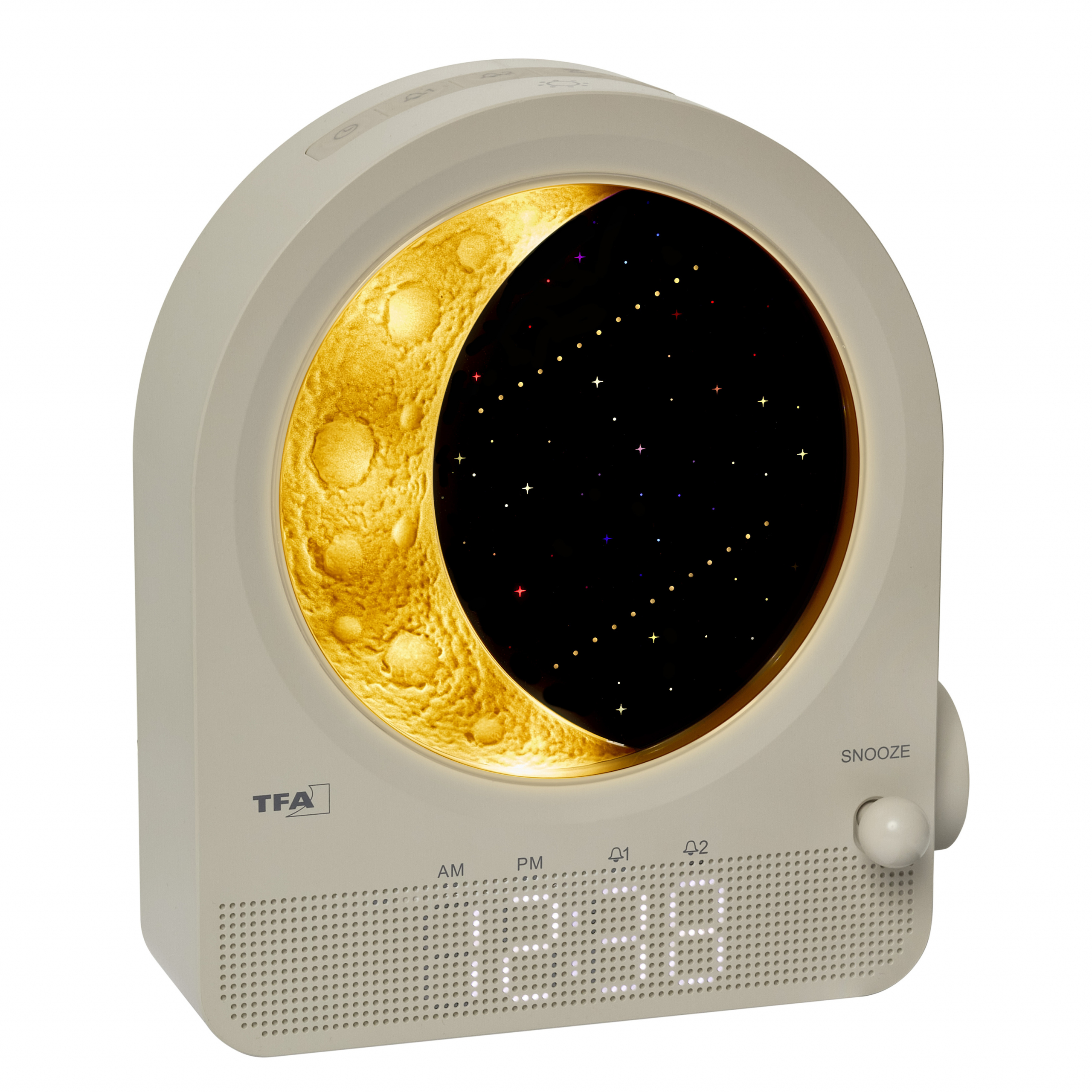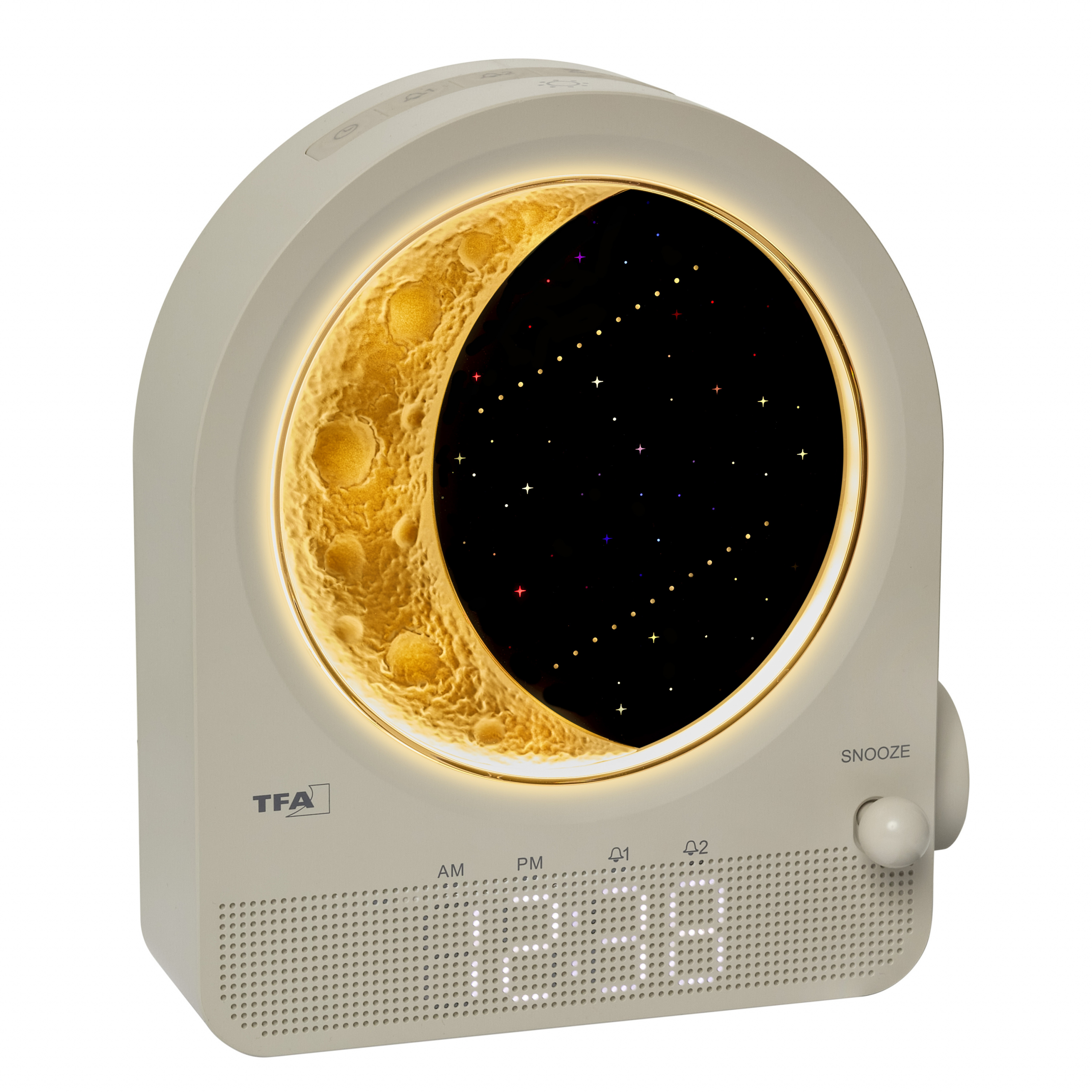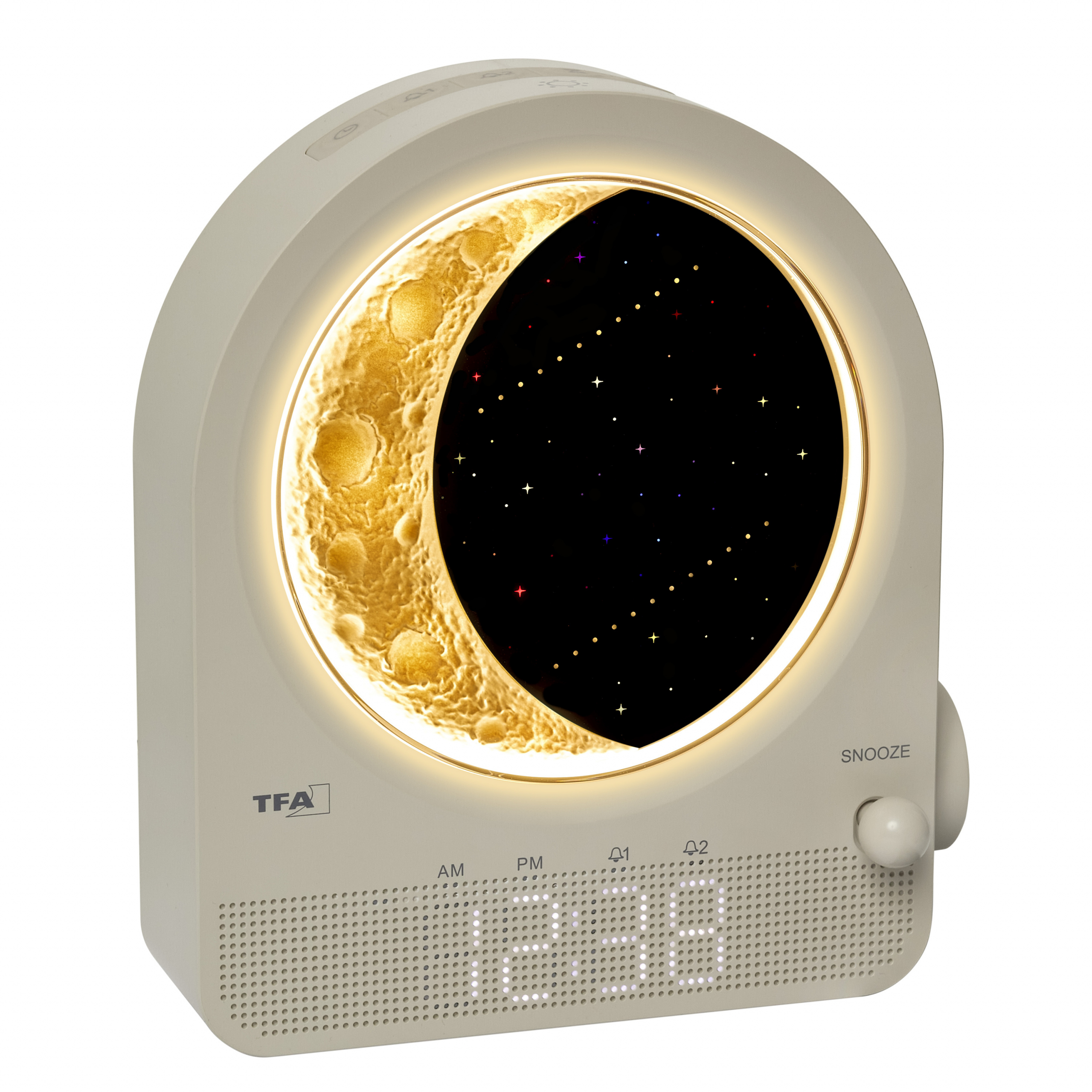 Neka vas očara ovaj digitalni svjetlosni budilnik s mjesečevom lampom i zvukovima prirode iz TFA Dostmanna. Idealan kao nježan sustav za spavanje i buđenje za cijelu obitelj – i pravi privlačan za poglede na svakom noćnom ormariću. Doživite mirne noći i mirna jutra.